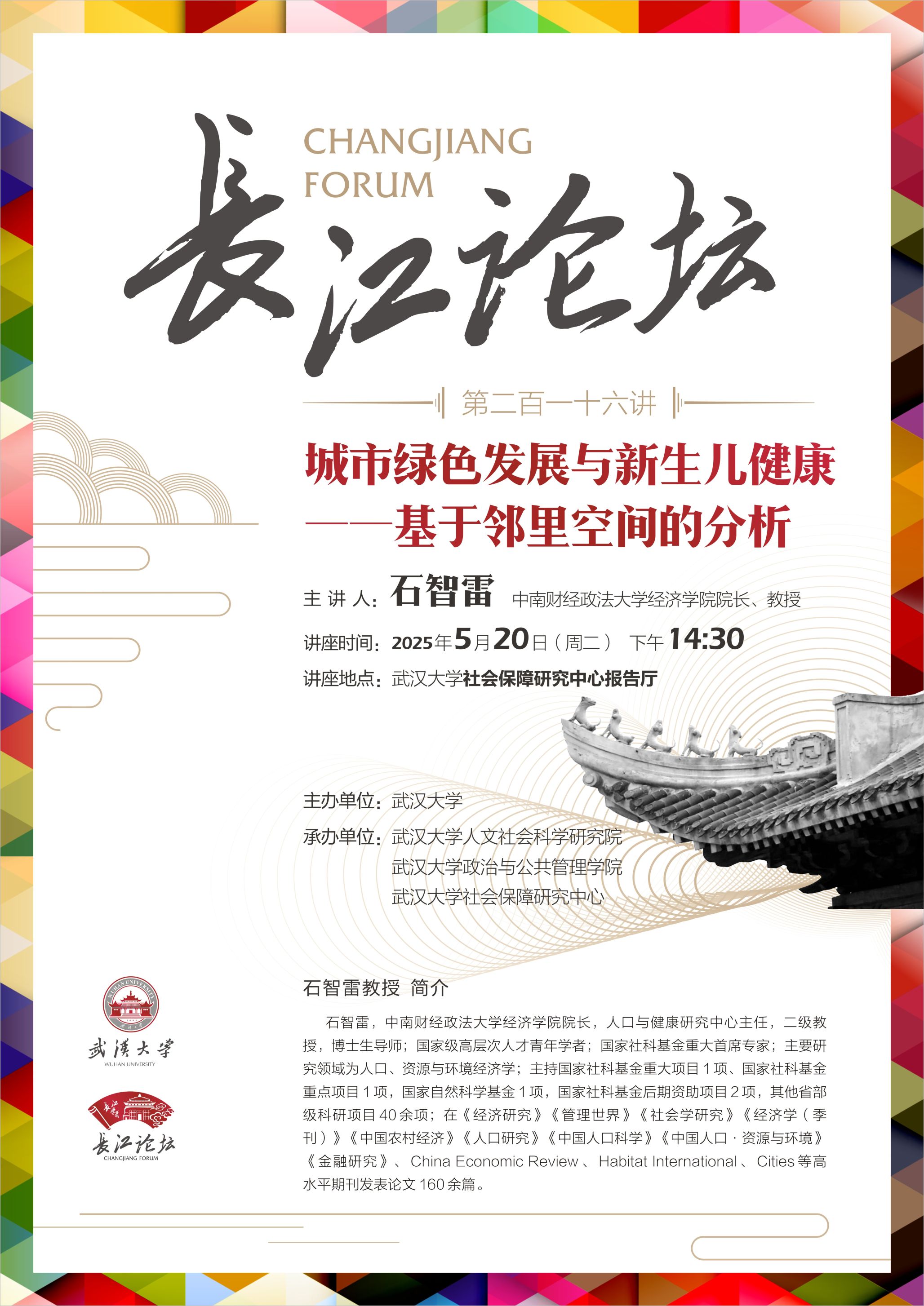 【長江講壇】第216講預告 石智雷:城市綠色發展與新生兒健康——基於鄰裏空間的分析-世界杯直播网