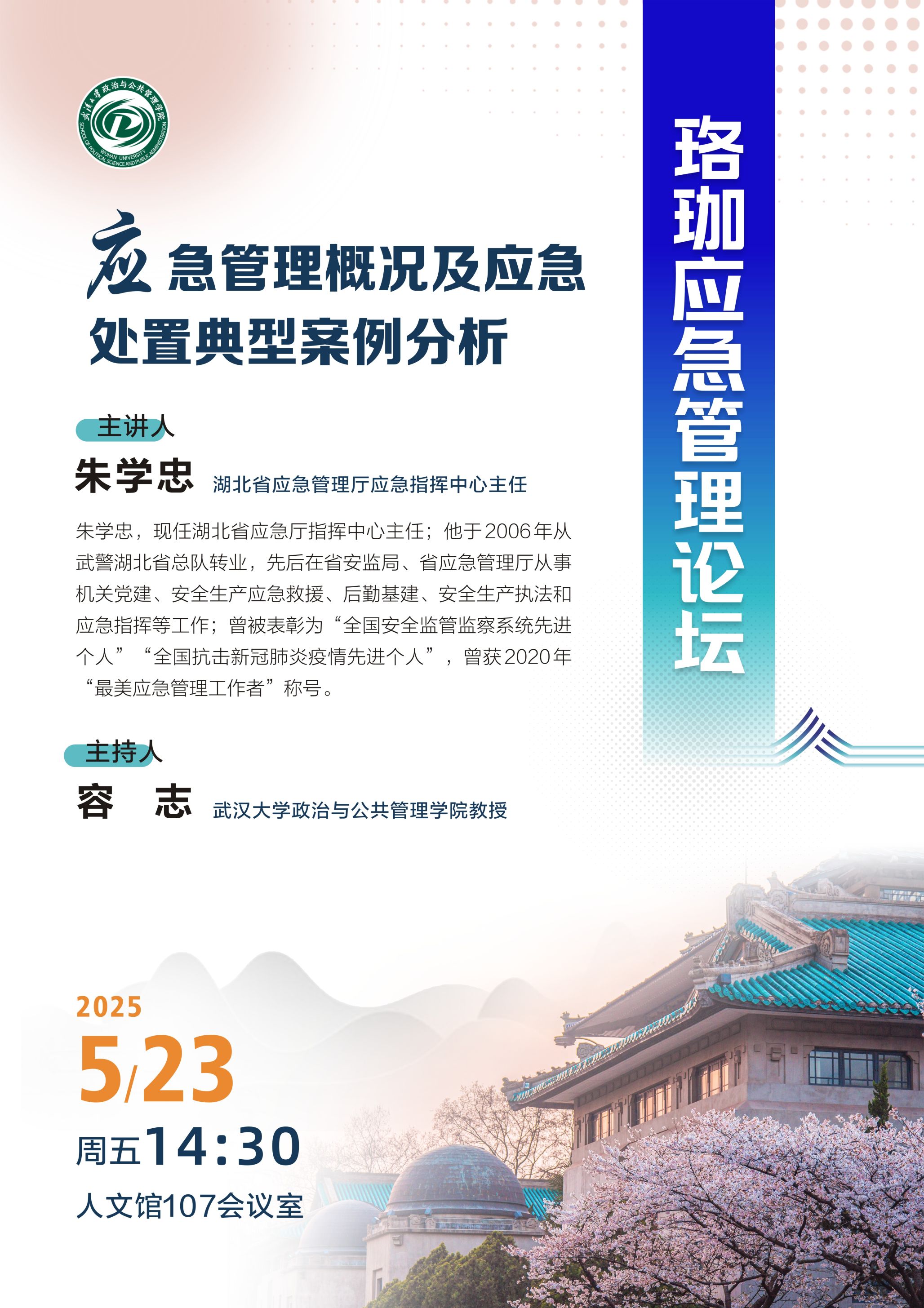 【講座預告】珞珈應急管理論壇 | 應急管理概況及應急處置典型案例分析