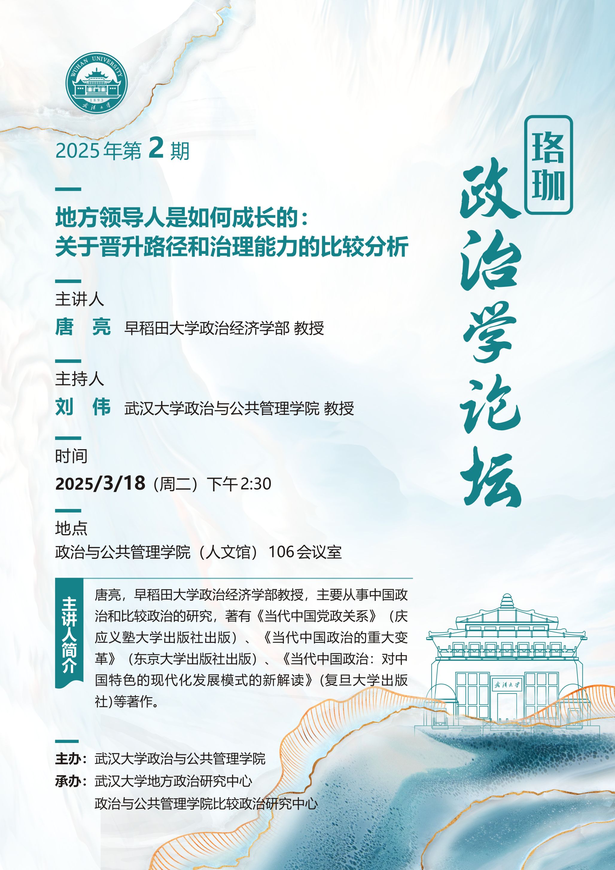 【講座預告】珞珈政治學論壇 | 地方領導人是如何成長的:關於晉升路徑和治理能力的比較分析
