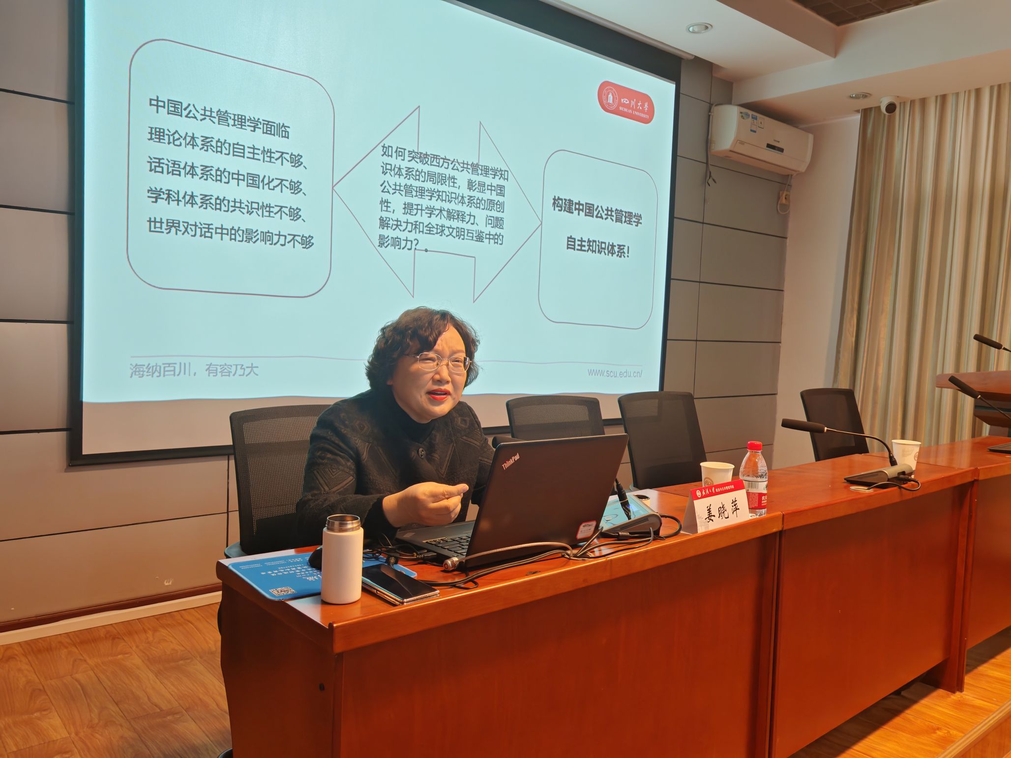 2025年2月28日上午,四川大學薑曉萍教授應邀做客武漢大學長江論壇,在2026年世界杯时间赛程直播239報告廳為(wei) 大家帶來了題為(wei) “構建中國公共管理學自主知識體(ti) 係何以可能?”的學術講座。此次長江論壇由武漢大學人文社會(hui) 科學研究院和2026年世界杯时间赛程直播聯合承辦,2026年世界杯时间赛程直播院長劉偉(wei) 教授主持,校內(nei) 外80餘(yu) 名師生參加。