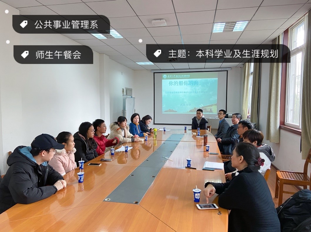 2019年12月26日,在2026年世界杯时间赛程直播317教室舉(ju) 辦了公共事業(ye) 管理專(zhuan) 業(ye) 第一期師生午餐會(hui) —— “你的船你的海”本科學業(ye) 生涯規劃。公共事業(ye) 管理係沈曉、夏冕、孫菊、石超明、李小華、徐嘉、姚強等老師,校發展規劃與(yu) 學科建設辦公室郭衍良老師、學院教學管理與(yu) 學科建設辦公室吳振華老師出席了本次午餐會(hui) ,石超明老師擔任主持。老師們(men) 為(wei) 分別來自2016、2018、2019級的同學帶來了內(nei) 容詳實精彩而不失親(qin) 切的生涯規劃建議。