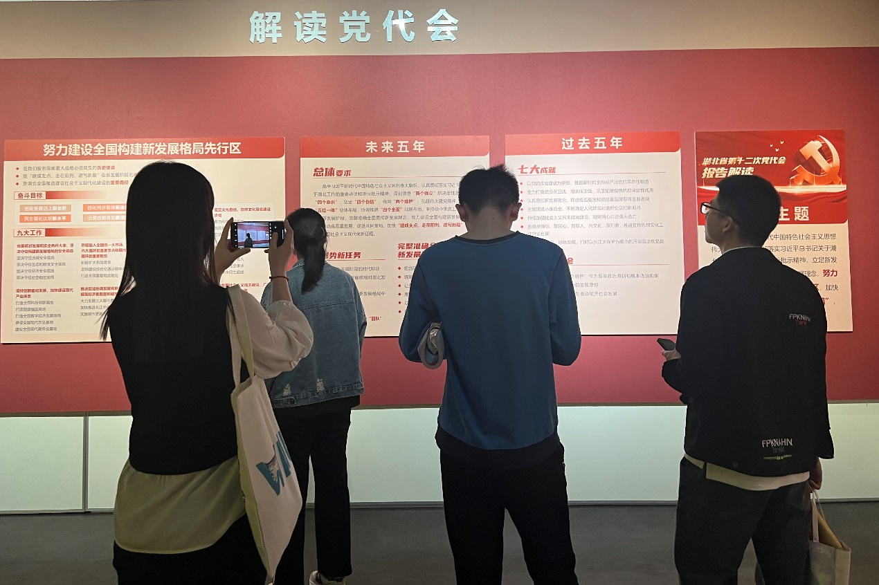 此外,支部成員還參觀了由辛亥革命博物院承辦的“輝煌十年·荊楚答卷”展覽,認真學習(xi) 黨(dang) 的十八大以來湖北廣大黨(dang) 員幹部和人民群眾(zhong) 不懈奮鬥的故事。新時代壯闊的荊楚畫卷,取得的一係列巨大成績,均進一步激發了支部成員的愛黨(dang) 愛國熱情,提振了大家勇擔使命、報效祖國、幹事創業(ye) 的激情和信心。