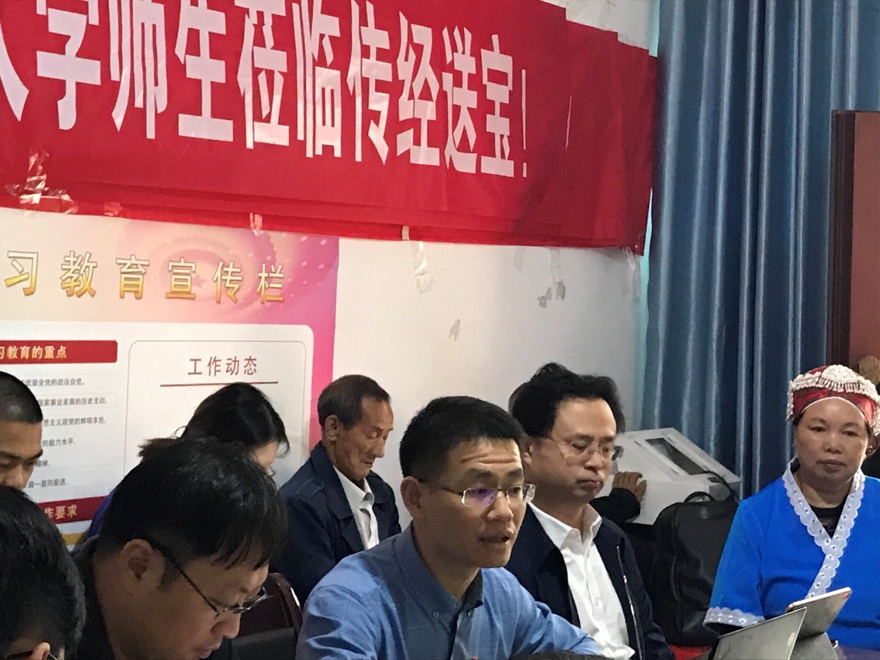 呂教授把課堂從(cong) 珞珈山搬到了湘黔線鐵路下的苗族山村裏,他通過直白易懂的言語,從(cong) 中國基層治理的重大轉向、當前基層治理的關(guan) 鍵領域、基層治理研究的核心議題與(yu) 新時代青年的社會(hui) 擔當四個(ge) 層麵向在座村幹部及青年大學生們(men) 講述我國基層治理的基本情況與(yu) 未來發展方向。