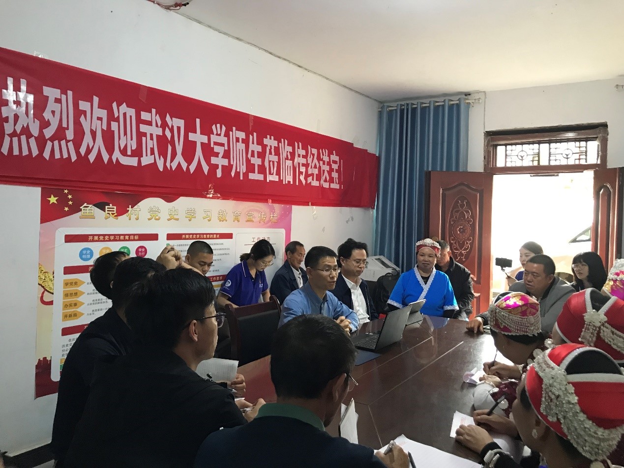 本次貴州凱裏參訪實踐是武漢大學2020-2021學年學生黨(dang) 支部“活力創新工程”精品項目:新時代基層治理研習(xi) 計劃——黨(dang) 組織引領研究生“紮根基層、服務國家重大戰略”係列活動中的重要研習(xi) 活動,為(wei) 了讓同學們(men) 對基層治理實務有更加真切直觀的認識,從(cong) 理論上更好的指導研究生開展基層治理實踐,在村第一書(shu) 記吳家俊院友的協助下,研究生黨(dang) 總支邀請政治學係呂普生老師把研習(xi) 課堂搬到了湘黔線下苗族山村,現場觀摩魚良村村兩(liang) 委會(hui) 議事,呂老師與(yu) 村幹部、研究生黨(dang) 員骨幹一起研學基層治理有關(guan) 問題,活動全程同步在騰訊會(hui) 議進行線上直播。