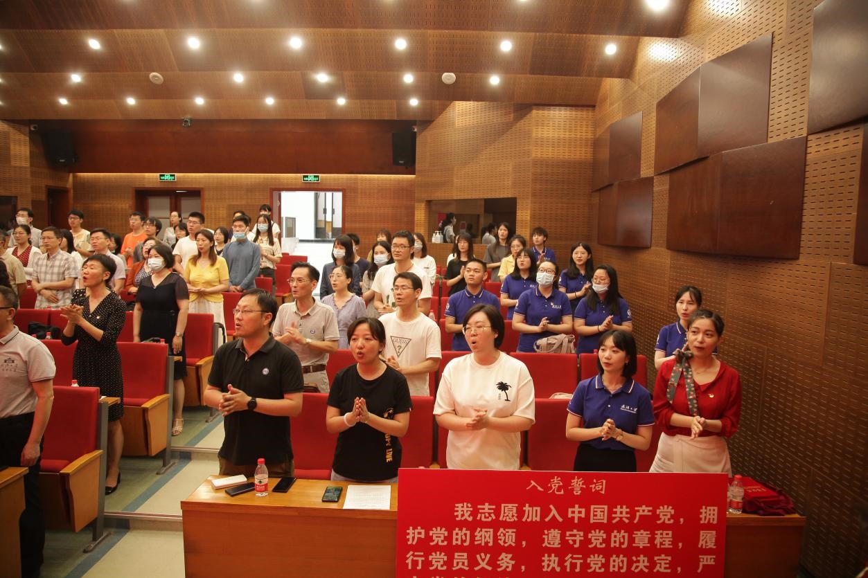 一名黨(dang) 員就是一麵鮮紅旗幟,老黨(dang) 員同誌的故事激勵著年輕一輩奮勇向前,他們(men) 麵對黨(dang) 旗作出的莊嚴(yan) 承諾,更成為(wei) 50年如一日遵守的行為(wei) 準則。“我誌願加入中國共產(chan) 黨(dang) ……”站在鮮紅的黨(dang) 旗麵前,劉德厚、陳少蘭(lan) 、鄧大鬆和劉興(xing) 國四位老黨(dang) 員帶領全場黨(dang) 員重溫入黨(dang) 誓詞,參加活動的黨(dang) 員全體(ti) 起立,佩戴黨(dang) 員徽章,莊嚴(yan) 地舉(ju) 起右手,一句句誓言鏗鏘有力,久久回蕩。