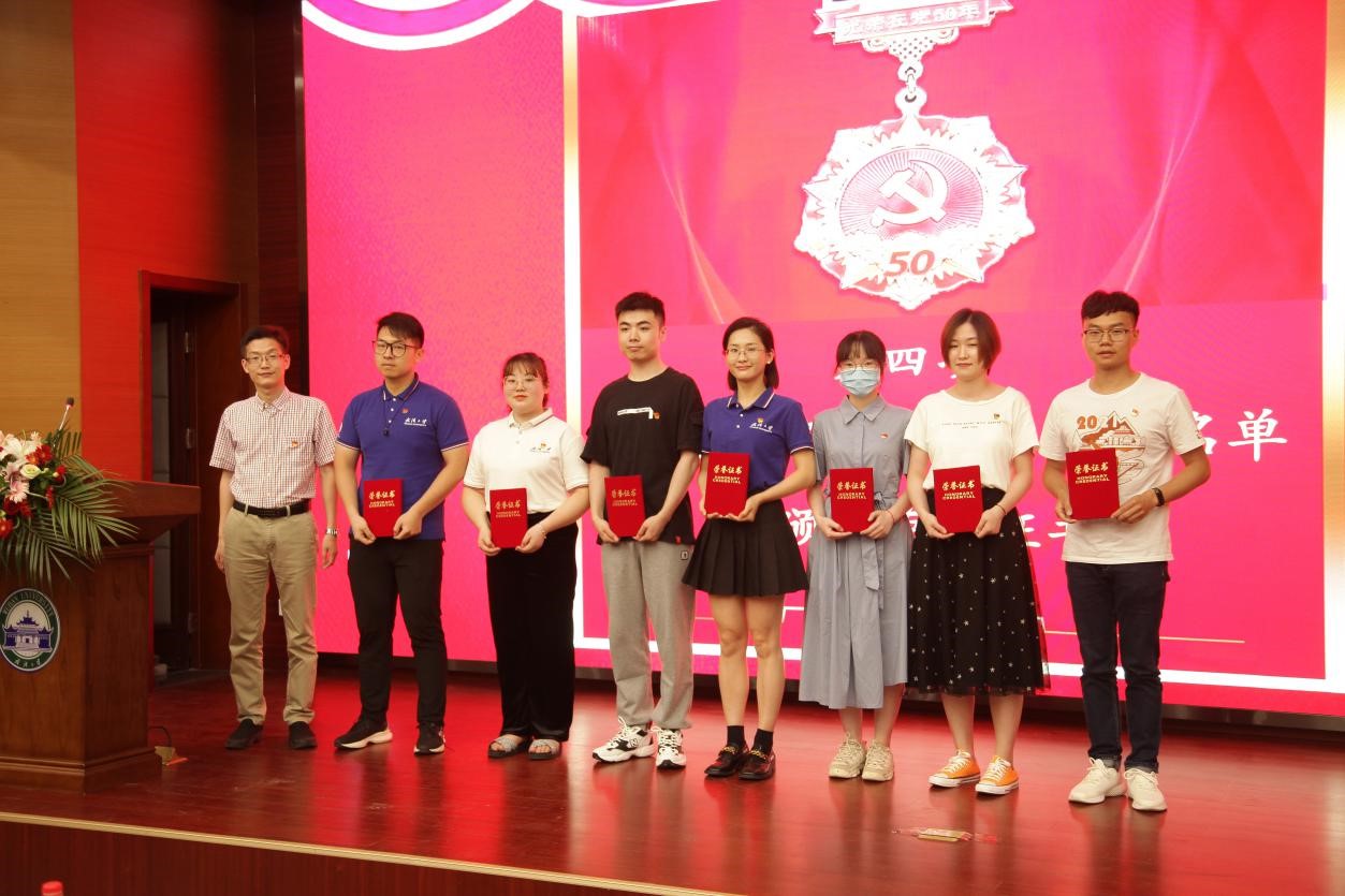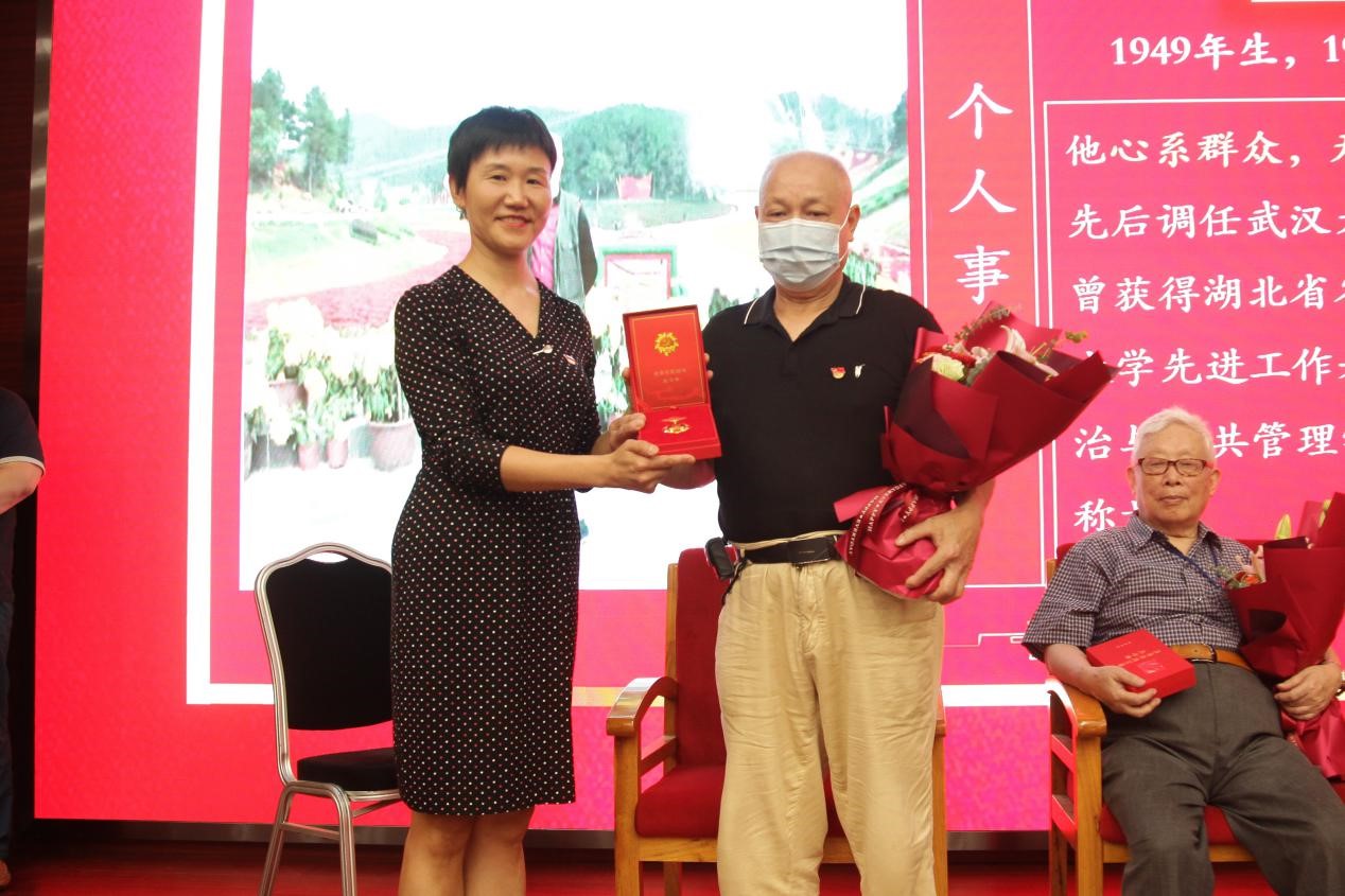 儀(yi) 式第一項,黨(dang) 委書(shu) 記梁濤同誌代表學院黨(dang) 委向學院榮獲中共中央 “光榮在黨(dang) 50年”紀念章的八位老同誌表示熱烈祝賀,並宣讀授予名單。之後,在隆重熱烈的氣氛中,梁濤為(wei) 劉德厚、陳少蘭(lan) 、鄧大鬆、劉興(xing) 國4位黨(dang) 齡50年以上的在漢在校老黨(dang) 員代表一一頒發紀念章。