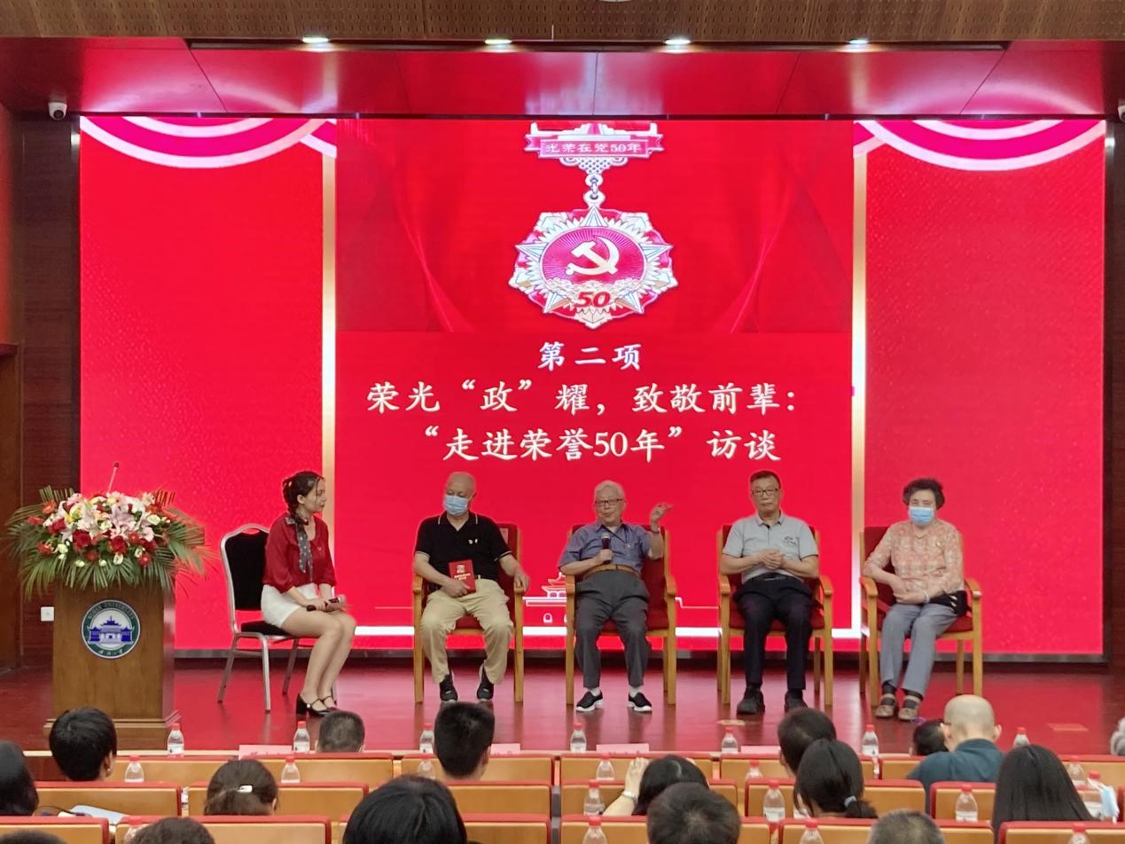 接著,儀(yi) 式進入“走進榮譽50年”訪談環節。碩士1902黨(dang) 支部孫靜竹同誌作為(wei) 青年黨(dang) 員代表帶領大家一起聆聽四位黨(dang) 齡超過50年的老黨(dang) 員的奮鬥曆程和光輝事跡,與(yu) 老黨(dang) 員同誌一起憶往昔、看今朝、展望未來,感悟初心使命,汲取奮鬥力量。