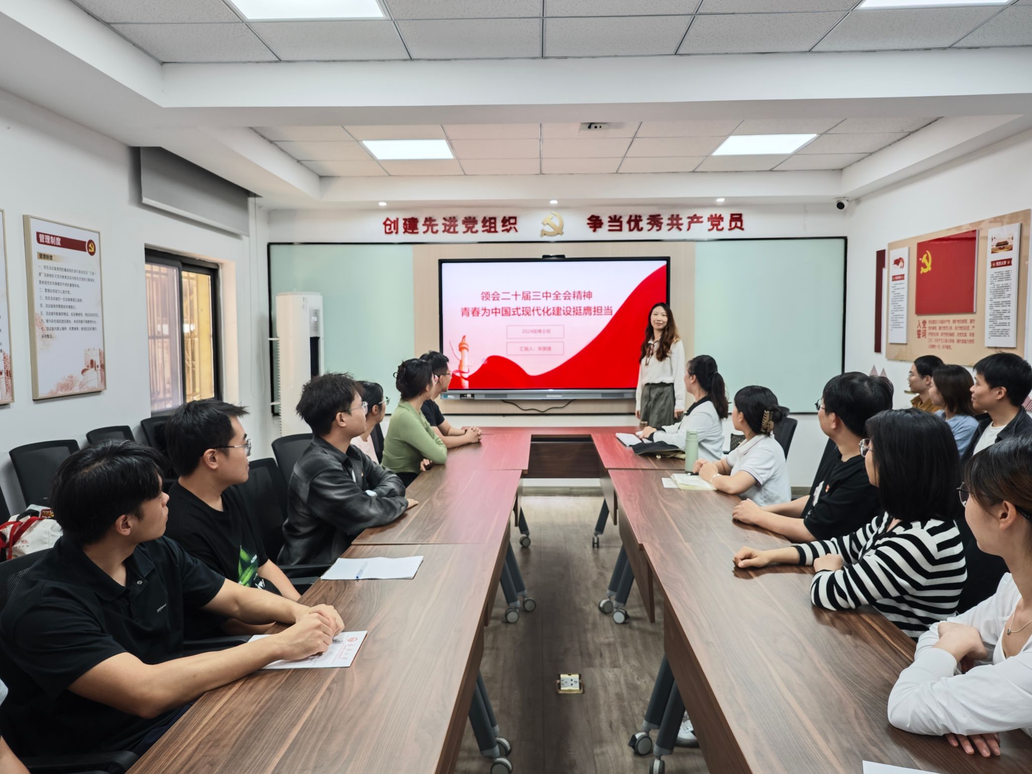 首先,黨(dang) 支部紀檢委員宋美瑾領學了《中共中央關(guan) 於(yu) 進一步全麵深化改革、推進中國式現代化的決(jue) 定》,係統闡述了黨(dang) 的二十屆三中全會(hui) 的重大意義(yi) 、核心內(nei) 容和精神實質,引導大家深刻認識到這次會(hui) 議對於(yu) 黨(dang) 和國家事業(ye) 發展的深遠影響。