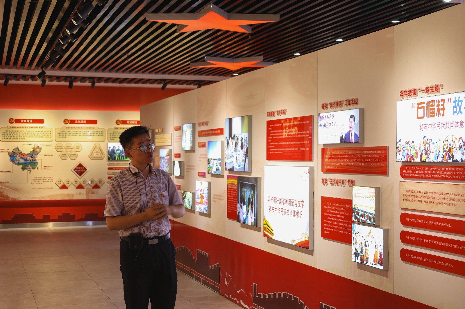 重溫入黨(dang) 誓詞之後,全體(ti) 黨(dang) 員跟隨講解員的步伐,依“偉(wei) 大複興(xing) ,任重道遠”“中華民族,源遠流長”“成功實踐,光輝典範”“民族團結,國泰民安”“石榴花開,同心同勝”五大板塊深入學習(xi) 了鑄牢中華民族共同體(ti) 意識的主要內(nei) 容與(yu) 重大意義(yi) 。在完整學習(xi) 了十二條條習(xi) 近平總書(shu) 記關(guan) 於(yu) 民族問題的重要論述後,全體(ti) 黨(dang) 員聆聽了講解員講述的關(guan) 於(yu) “齊心協力建包鋼”“三千孤兒(er) 入內(nei) 蒙”和“人民楷模”都貴瑪的故事,並學習(xi) 了鄂爾多斯市東(dong) 勝區在紮實推動全區民族團結進步事業(ye) 中取得的新成就,以及在開創民族團結進步事業(ye) 中的“東(dong) 勝經驗”,深刻感受到了中華民族的強大凝聚力和樹立中華民族共同體(ti) 意識的重要性。