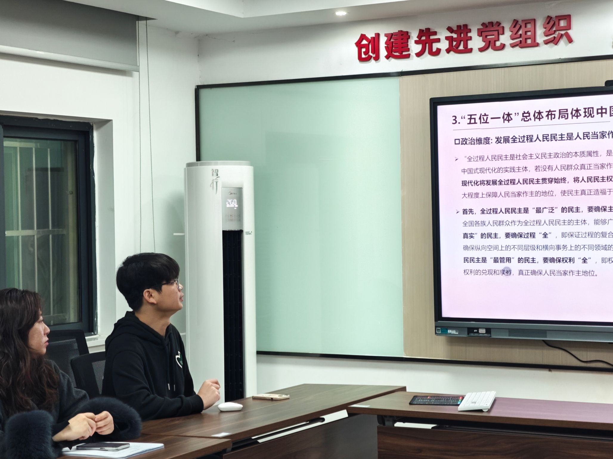 為(wei) 進一步提升支部成員的理論水平、政治素養(yang) 和思想覺悟,我院博士2024黨(dang) 支部於(yu) 1月7日在學院105會(hui) 議室組織開展了“以人民為(wei) 中心:中國共產(chan) 黨(dang) 領導中國式現代化的根本立場”主題黨(dang) 日活動。活動分為(wei) “理論學習(xi) ”和“主題交流”兩(liang) 個(ge) 環節。本次主題黨(dang) 日活動由博士2024黨(dang) 支部書(shu) 記王曾同誌主持,支部全體(ti) 黨(dang) 員、入黨(dang) 積極分子代表參加。
