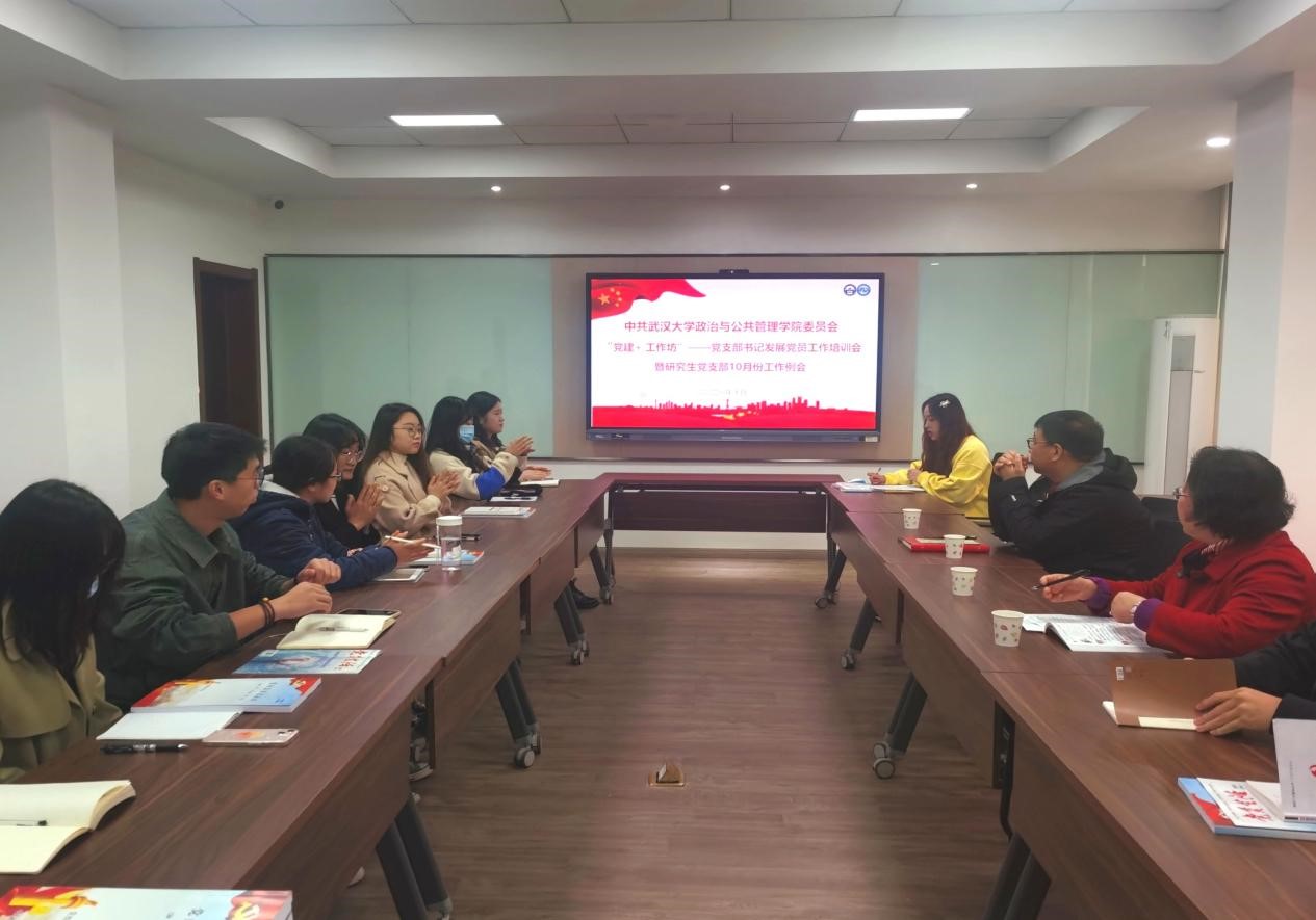 為(wei) 了進一步加強學院研究生黨(dang) 支部的規範化建設,提高學生黨(dang) 建工作質量和活力,提升學生黨(dang) 務工作者的素質和能力,學院特創設了“黨(dang) 建+ 工作坊”,旨在通過這一載體(ti) 為(wei) 師生黨(dang) 員提供相互學習(xi) 和交流的平台,拓寬思想政治主題教育學習(xi) 的渠道。2021年10月21日,中共世界杯直播网委員會(hui) 第一期“黨(dang) 建+工作坊”——黨(dang) 支部書(shu) 記發展黨(dang) 員工作培訓會(hui) 暨研究生黨(dang) 支部10月份工作例會(hui) 在學院108會(hui) 議室召開。