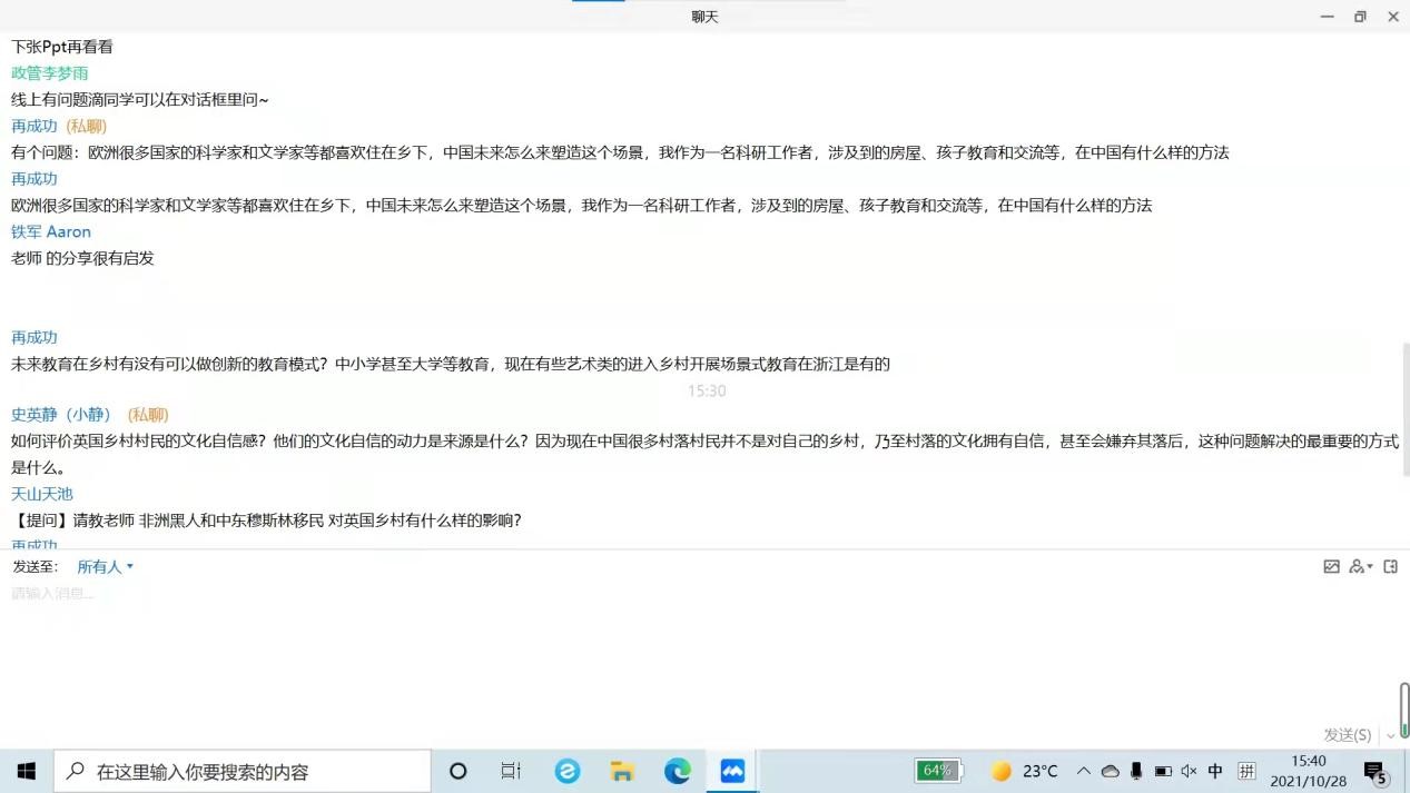 在講座互動環節中,現場及線上直播間聽眾(zhong) 圍繞鄉(xiang) 村文化保護和教育問題與(yu) 馮(feng) 老師展開深入的討論和交流。馮(feng) 老師稱讚同學們(men) 的提問具有獨特的視角,並勉勵同學們(men) 嚴(yan) 謹治學、重視實踐。馮(feng) 老師通過細致地講解,詮釋了鄉(xiang) 村文化保護的基本內(nei) 容、方法和經驗,為(wei) 與(yu) 會(hui) 聽眾(zhong) 提供了一次寶貴的學習(xi) 機會(hui) 。