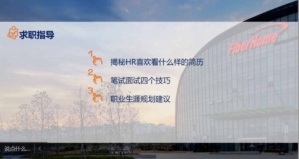 周鵬程師姐回顧了個(ge) 人的企業(ye) 求職經曆,以自身經驗為(wei) 基準,從(cong) 簡曆編撰、筆試測評、企業(ye) 麵試三方麵給同學們(men) 提出如下建議:第一,簡曆內(nei) 容重點要突出,排版需簡潔明了;第二,筆試測評需大量練習(xi) ,掌握筆試技巧;第三,麵試前需提前準備好自我介紹,回答問題要掌握技巧。最後,師姐寄語同學們(men) 希望大家能找到該做的、想做的、能做的工作。