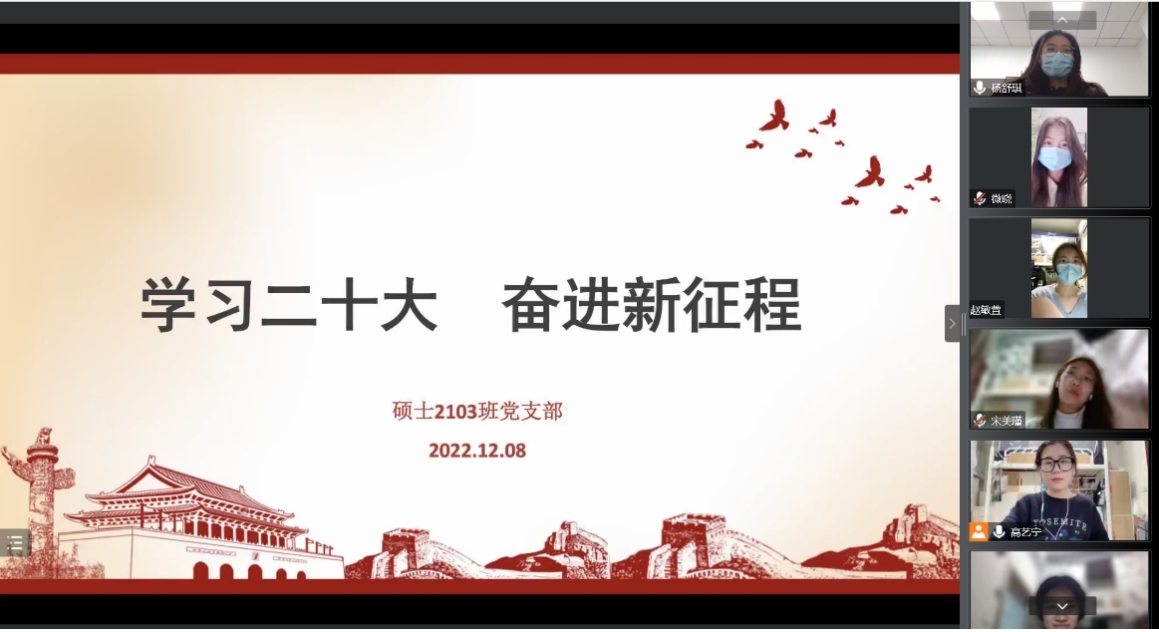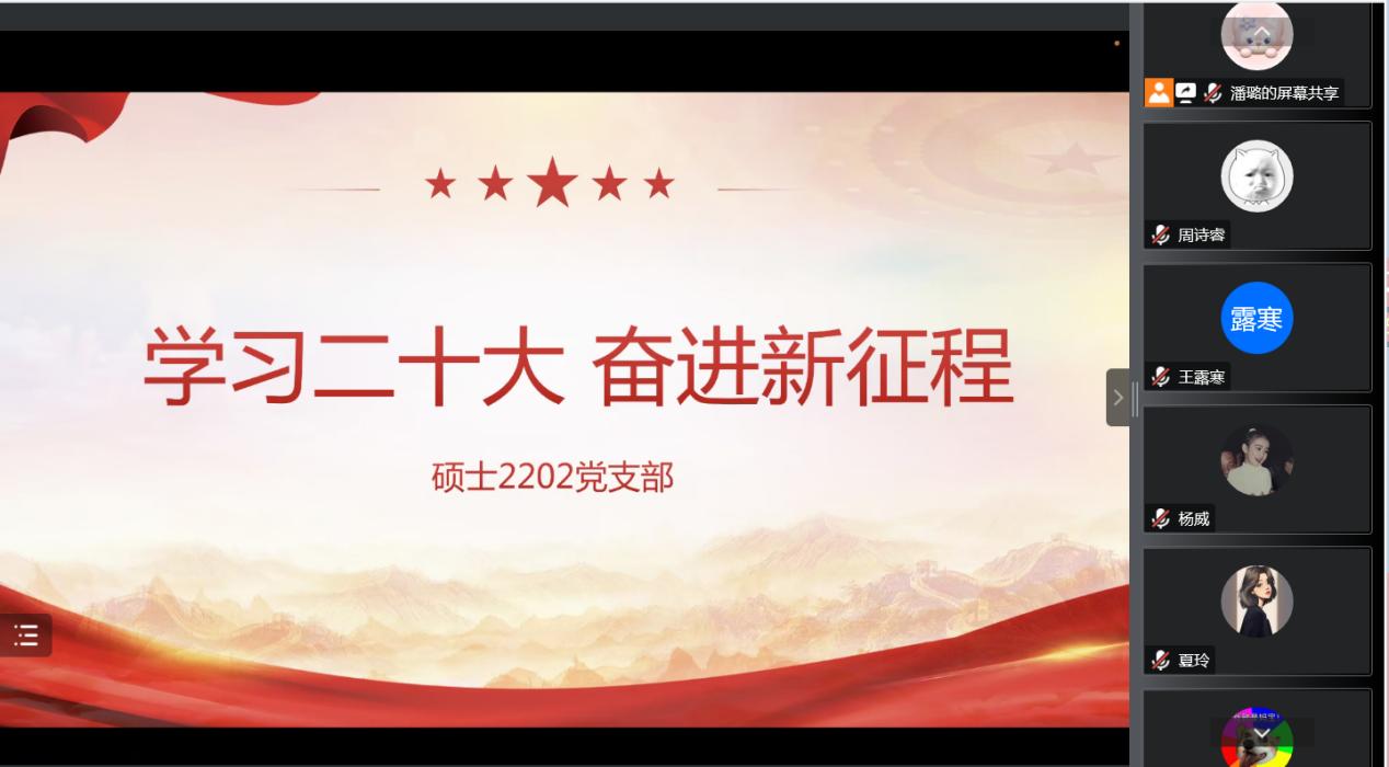 碩士2202黨(dang) 支部以集體(ti) 重溫黨(dang) 的二十大相關(guan) 視頻的方式,對大會(hui) 精神進行深刻理解與(yu) 深入探討,各位黨(dang) 員積極分享個(ge) 人心得。