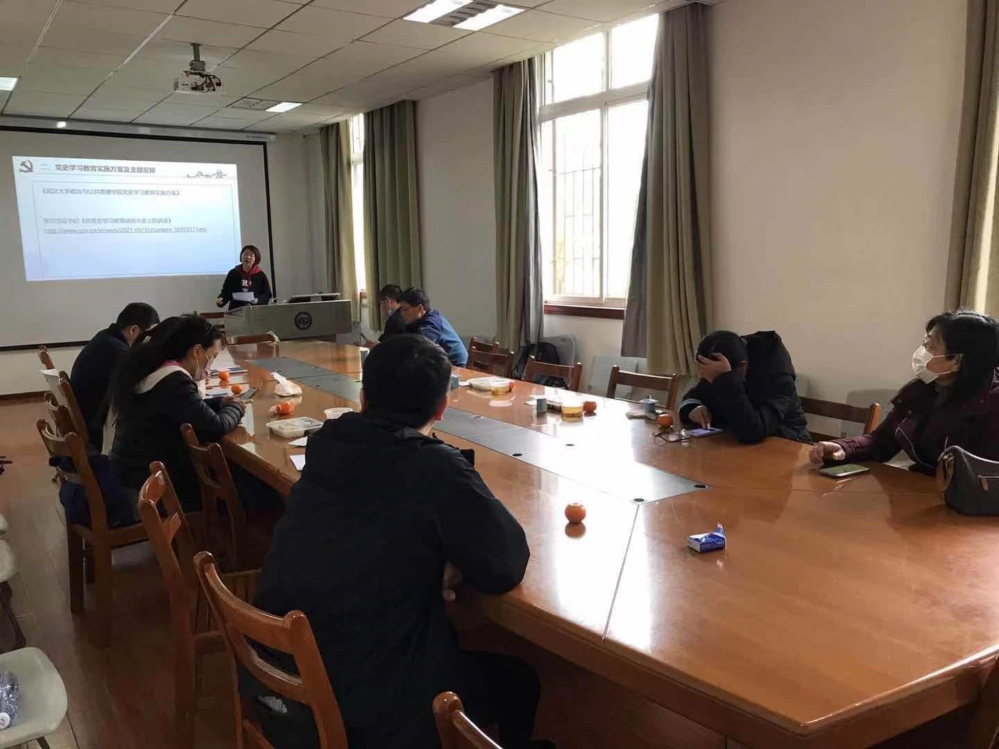 2021年4月12日,行政管理係黨(dang) 支部在學院317會(hui) 議室召開黨(dang) 史學習(xi) 教育動員會(hui) ,深入學習(xi) 貫徹習(xi) 近平總書(shu) 記在黨(dang) 史學習(xi) 教育大會(hui) 上的重要講話精神和中共中央印發的《關(guan) 於(yu) 在全黨(dang) 開展黨(dang) 史學習(xi) 教育的通知》精神,具體(ti) 落實學校和學院對黨(dang) 史學習(xi) 教育工作的部署和安排。係黨(dang) 支部書(shu) 記(代)黃菁主持會(hui) 議,全體(ti) 黨(dang) 員同誌出席並參加學習(xi) 。