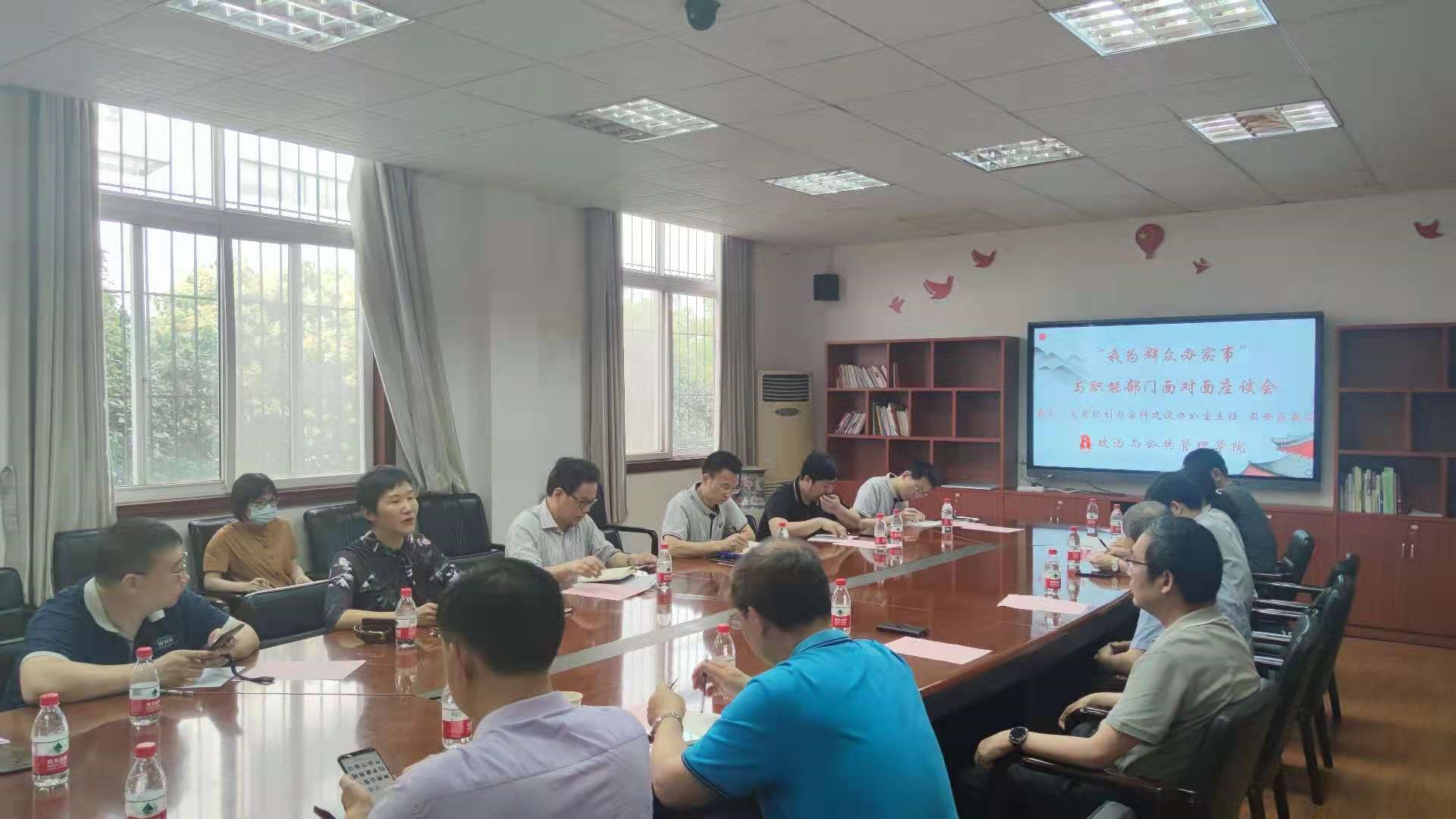 為(wei) 深入推進“我為(wei) 群眾(zhong) 辦實事”實踐活動,加強一流學科的謀劃和建設,持續推進學科繁榮發展,6月9日,學院舉(ju) 辦首場“與(yu) 職能部門麵對麵”係列座談會(hui) 。學校發展規劃與(yu) 學科建設辦公室主任巫世晶教授受學院之邀,就“十四五” 期間學院政治學學科與(yu) 公共管理學科在武漢大學學科發展中的定位與(yu) 布局、發展謀劃等問題與(yu) 教師代表進行麵對麵交流,對學院發展中的瓶頸問題問診把脈。全體(ti) 院領導、各相關(guan) 學科負責人、各係係主任、副主任、各教職工黨(dang) 支部書(shu) 記、各內(nei) 設機構主任參加會(hui) 議,黨(dang) 委書(shu) 記梁濤主持會(hui) 議。