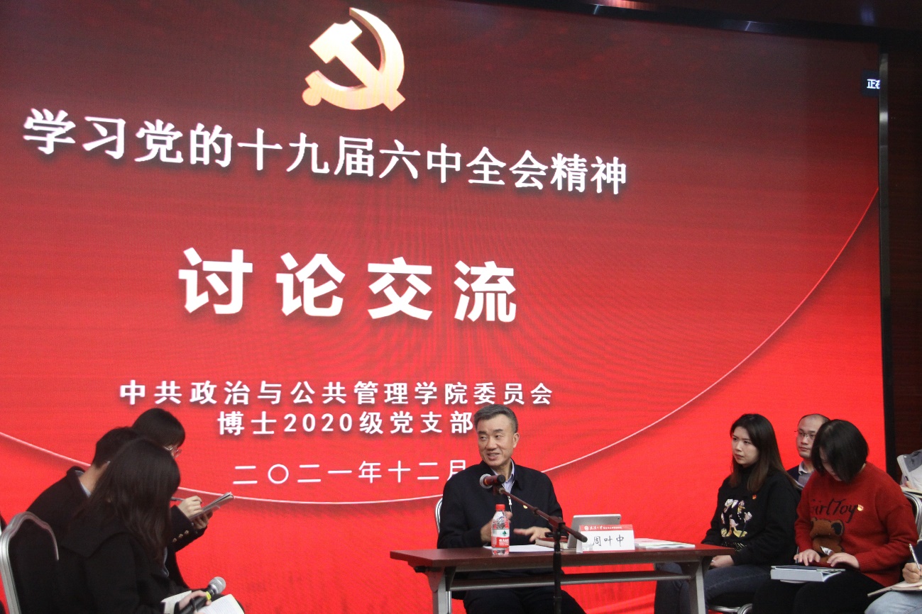 周葉中指出,十九屆六中全會(hui) 是黨(dang) 在“兩(liang) 個(ge) 一百年”曆史交匯點召開的一次具有重大意義(yi) 的會(hui) 議。第一個(ge) 百年奮鬥目標已經實現,我們(men) 黨(dang) 團結帶領人民交出了合格的曆史答卷。尤其是麵對突如其來的新冠疫情全球大流行,我們(men) 黨(dang) 經受住了考驗,成功控製住了國內(nei) 疫情蔓延勢頭,彰顯了“中國之治”的優(you) 勢,這同“西方之亂(luan) ”形成了鮮明對比。第二個(ge) 百年奮鬥目標已經起航,博士生黨(dang) 員群體(ti) 作為(wei) 新生代力量,要明確自身的責任與(yu) 擔當,將“小我”融入國家的“大我”之中,結合自身專(zhuan) 業(ye) 特點,講好新征程上的中國故事,唱響“中國聲音”。主動把自身的理論知識和祖國發展的生動實踐結合起來,在理論與(yu) 實踐的交匯處推進理論創新,為(wei) 美好新征程做出青年一代應有的貢獻。