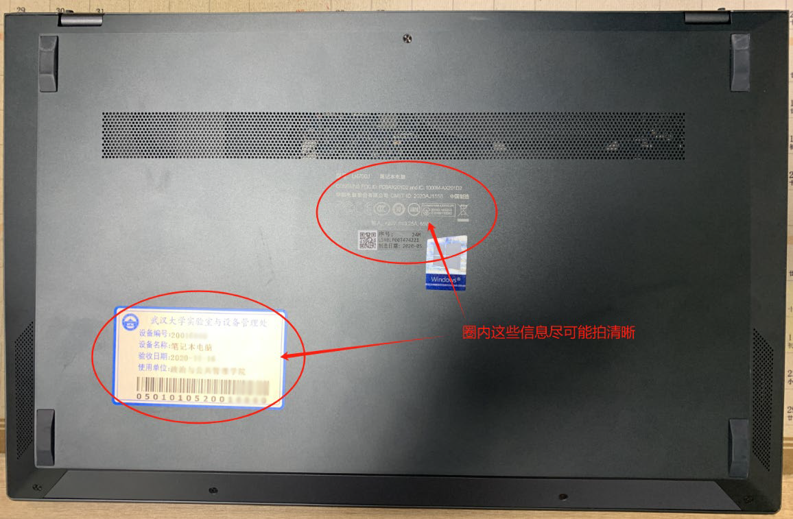 將對貼有設備編號標簽的一麵、設備出廠標簽、設備全貌分別拍攝1-3張清晰的照片(示例附後),上傳(chuan) 到設備管理係統。